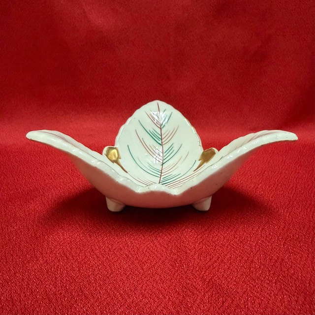 【商品名】:美濃焼 手描き向付 三つ足 日本の伝統的な美術工芸が息づく美濃焼の手描き向付、特別なデザインでお届けします。羽つきの羽のような形状は、目を引く美しさを持ち、懐石料理などの特別な料理を引き立てる存在感を醸し出します。 この向付には、豪華な金の装飾が施されており、食卓を華やかに彩ります。手描きの技術が光る一品は、使うたびに温かみを感じさせ、また、飾り物としても美しい存在になることでしょう。 ぜひ、特別な食のシーンを演出するために、この美しい向付をお手元に置いてみてください。状態や詳細については、写真をご確認の上お求めください。 【サイズ】高さ 約5.5cm、直径 約15cm。