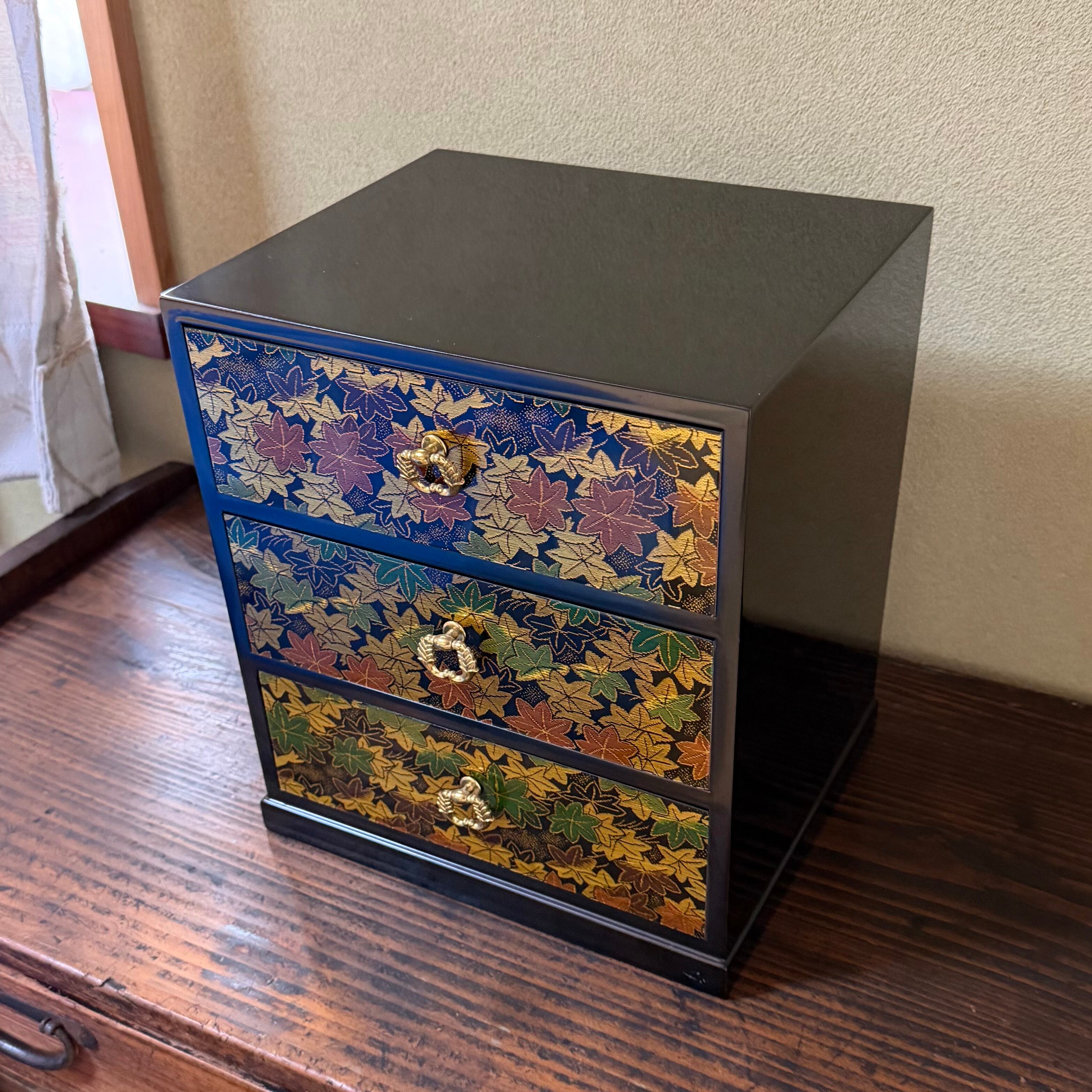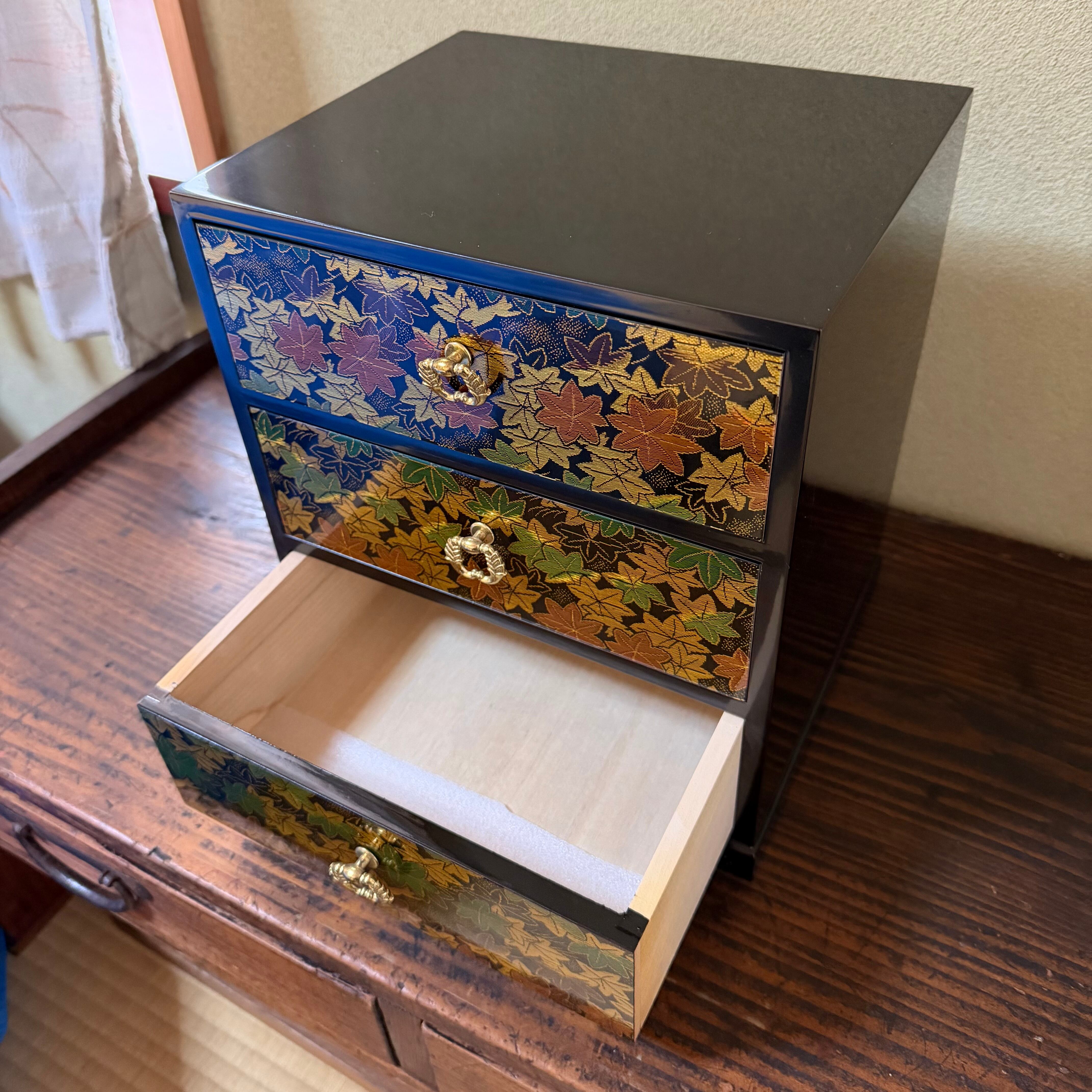 三つ引タンス 漆器と西陣織